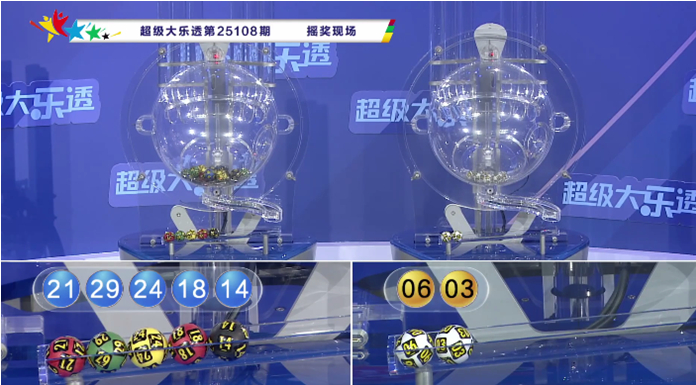 上期开奖:体彩大乐透第2025108期开奖号码为:14 18 21 24 29 + 03 06。